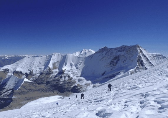 The third highest mountain in the world, Kanchenjungha is located on the border of Nepal and India (Sikkim), south-east of Nepal, northwest of Darjeeling. Mostly, two/three days of drive from Kathmandu to Taplejung. There's another possibility to shorten route by directly flying to Taplejung or Helicopter Charter to Tseram (about 5000m).